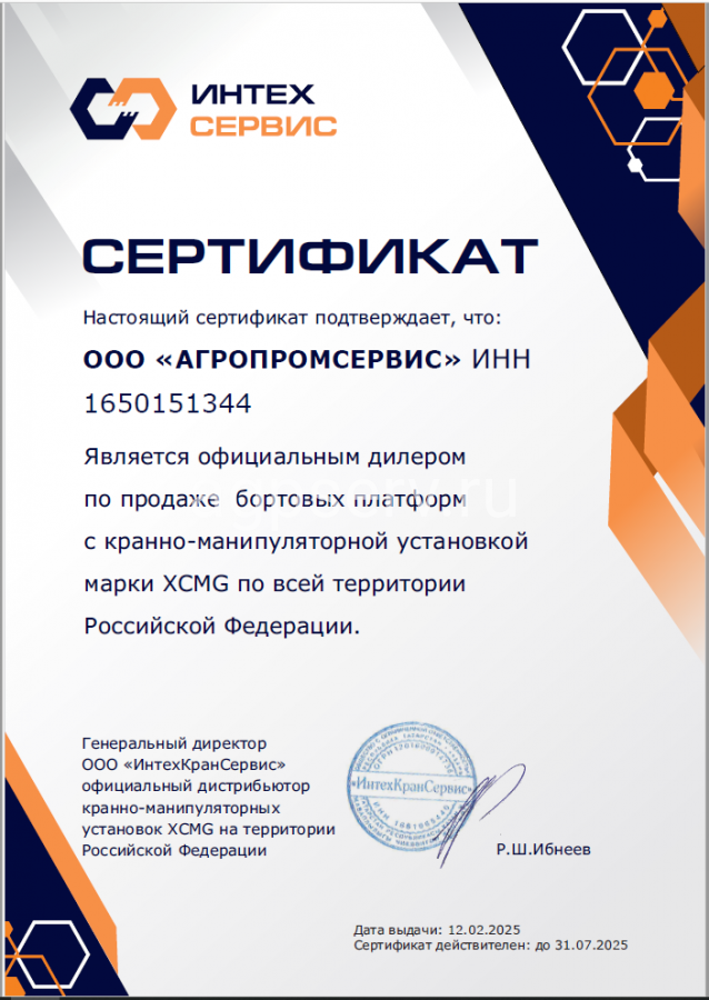 ООО «Агропромсервис» был основан в 2007г., основным из ключевых направлений предприятия являлась оптовая продажа сельхозтехники, сельскохозяйственного оборудования, в 2013 году была получена Лицензия ФСБ на установку тахографов. С мая 2021 года внедрено новое направление по производству и продаже автоспецтехники на базе шасси отечественного и импортного производства, в частности, автомобилей со смонтированными на них крано-манипуляторными установками.